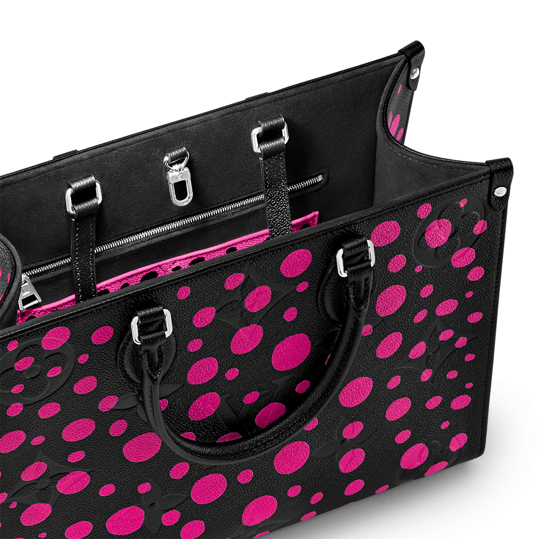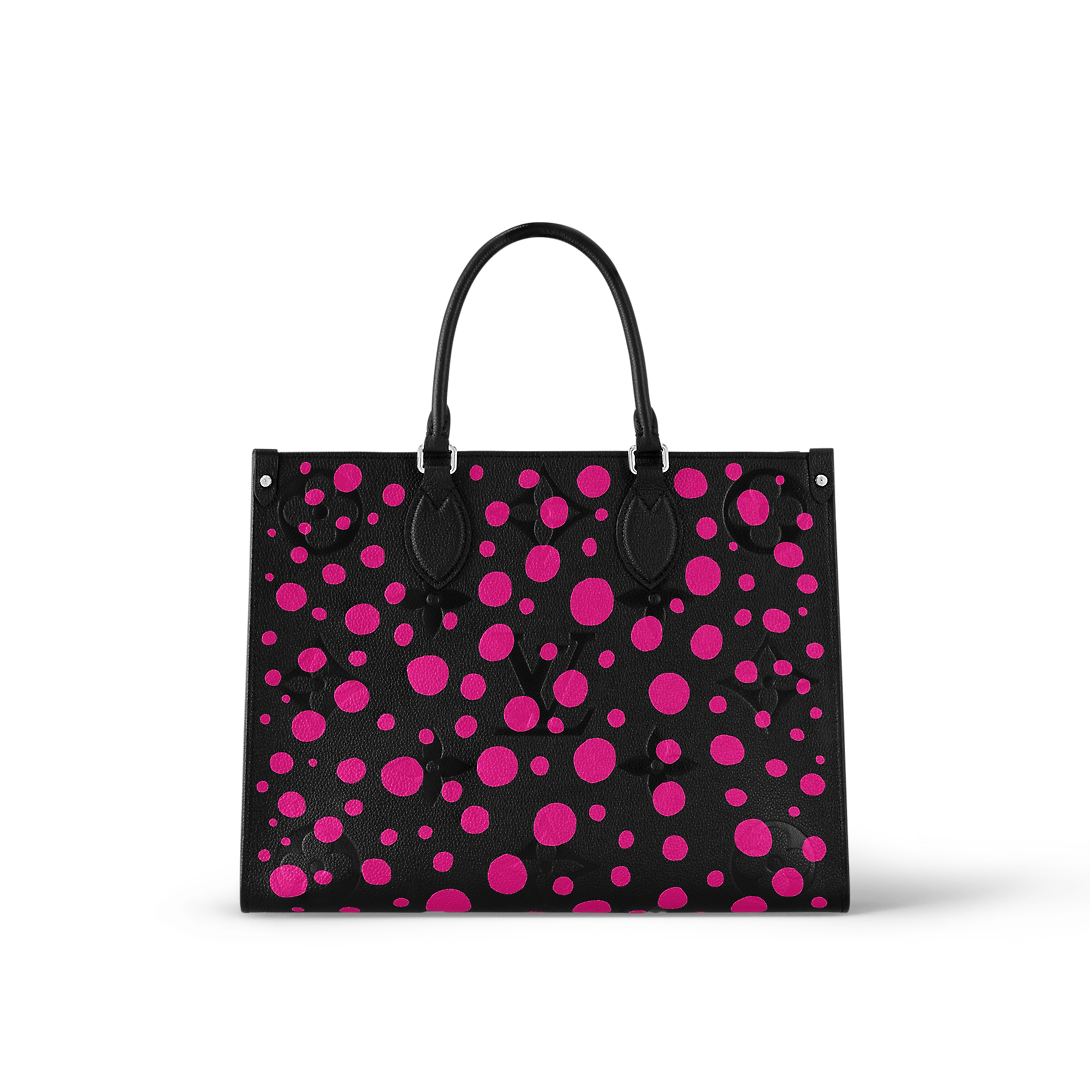「ルイ・ヴィトン × 草間彌生」コラボレーションの新作コレクションに相応しく 「インフィニティ ドット」のテーマで表現した「LV × YK オンザゴー MM」。1960年代からアヴァンギャルドなアート界に影響を与え 広く愛されその名を知られる日本人アーティストの草間彌生は 目の眩むような水玉模様で知られています。ブラックのモノグラム・アンプラント レザーに鮮やかなフューシャカラーの「インフィニティ ドット」のモチーフをあしらった 大容量で使い心地の良いバッグです。草間のもう1つの視覚的なシグネチャーであるカボチャを象った取外し可能な「パンプキン」のモチーフのチャームも魅力。